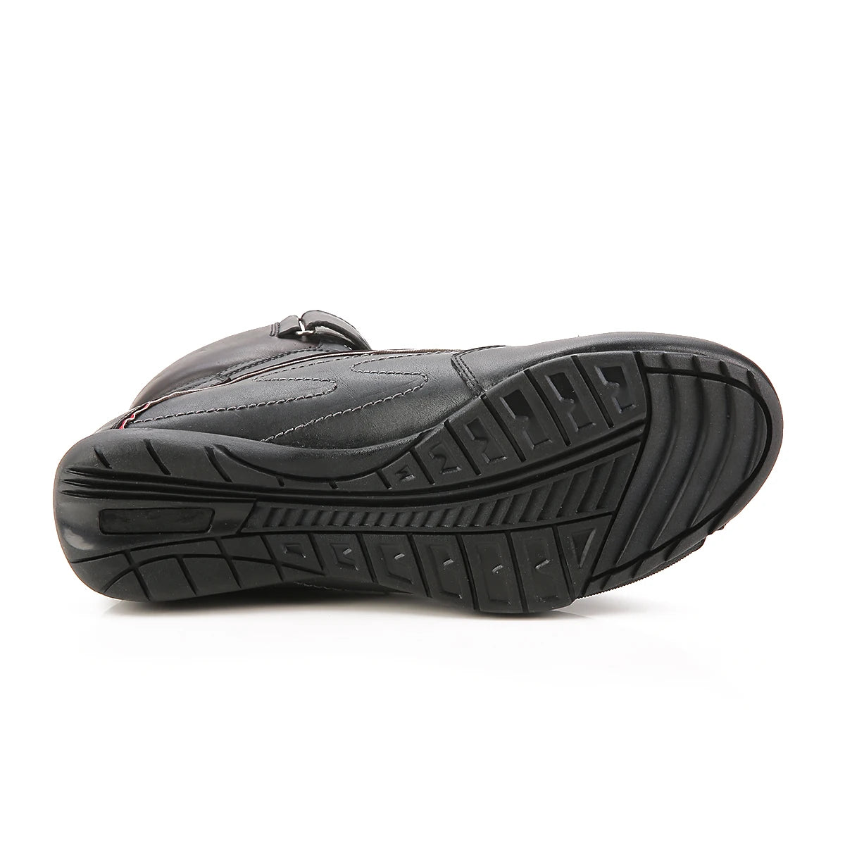 Diseñadas para Touring, estas botas L60555 de tobillo reforzado son perfectas para cualquier estación. Fabricadas con cuero genuino de vaca en color negro, ofrecen soporte de arco, absorción de impactos y son increíblemente resistentes al desgaste. Su diseño fresco y ligero incluye características antideslizantes y transpirables, asegurando máximo confort en la ruta. Ajuste con correa de hebilla.