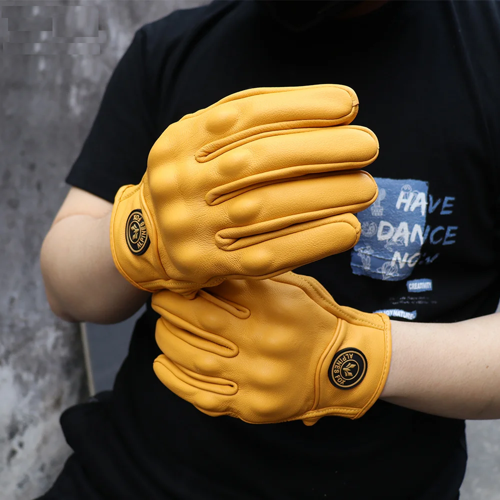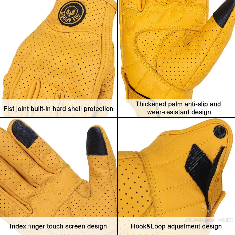 Los guantes AFG-16 combinan estilo vintage y rendimiento moderno para tus rutas de verano. Fabricados en poliéster y nylon, ofrecen ligereza y gran transpirabilidad, con opción de acabados microperforados para mayor frescor. Su diseño en amarillo destaca sin renunciar a la comodidad, y además son compatibles con pantallas táctiles. Control, estilo y frescura en cada kilómetro