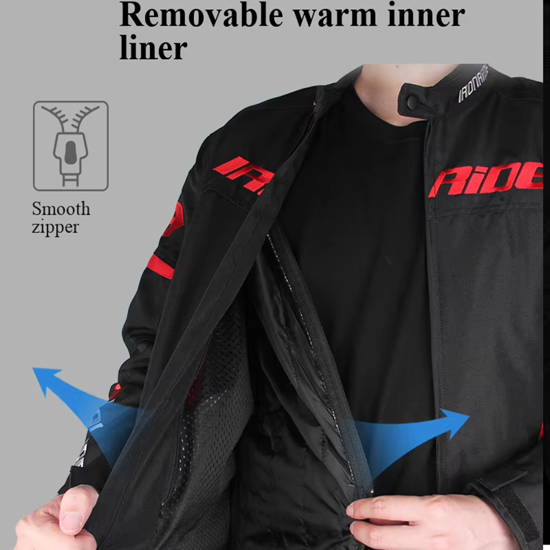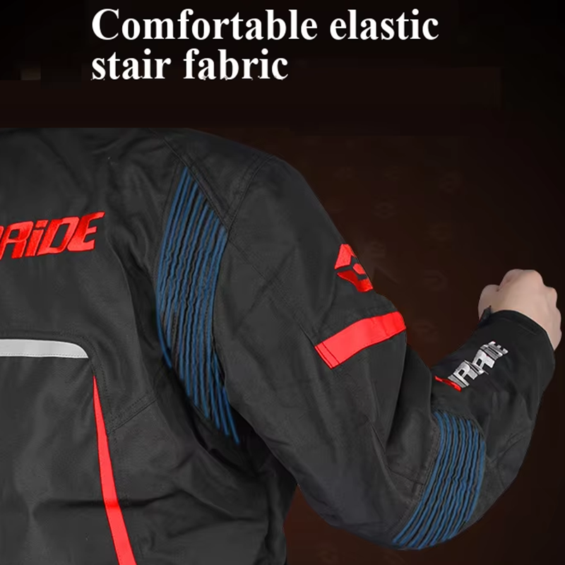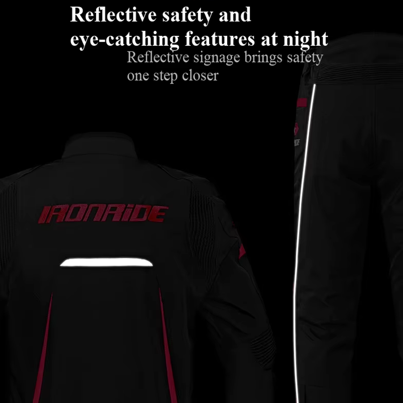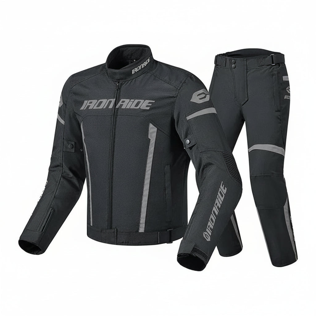 El traje MC1011-05 consiste en un traje de dos piezas, chaqueta y pantalón fabricados en tela 600D Oxford para minimizar la abrasión. Se suministra con protecciones de plástico para una mayor protección y es resistente al agua y viento. Dispone además de reflectantes para una mayor visibilidad en condiciones nocturnas. Perfecto para el motero que no le pesan las horas.