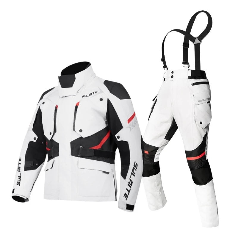 Conjunto de moto MR032 unisex apto para su uso durante todo el año. Compuesto por chaqueta y pantalón fabricados en poliéster/nylon con exterior en 600D Oxford resistente a la abrasión. La membrana TPU aporta impermeabilidad y transpirabilidad. Incluye forro térmico acolchado desmontable y protecciones en hombros, codos y espalda. Traje cómo do para aquellos que empiezan y no saben cuando acabarán.