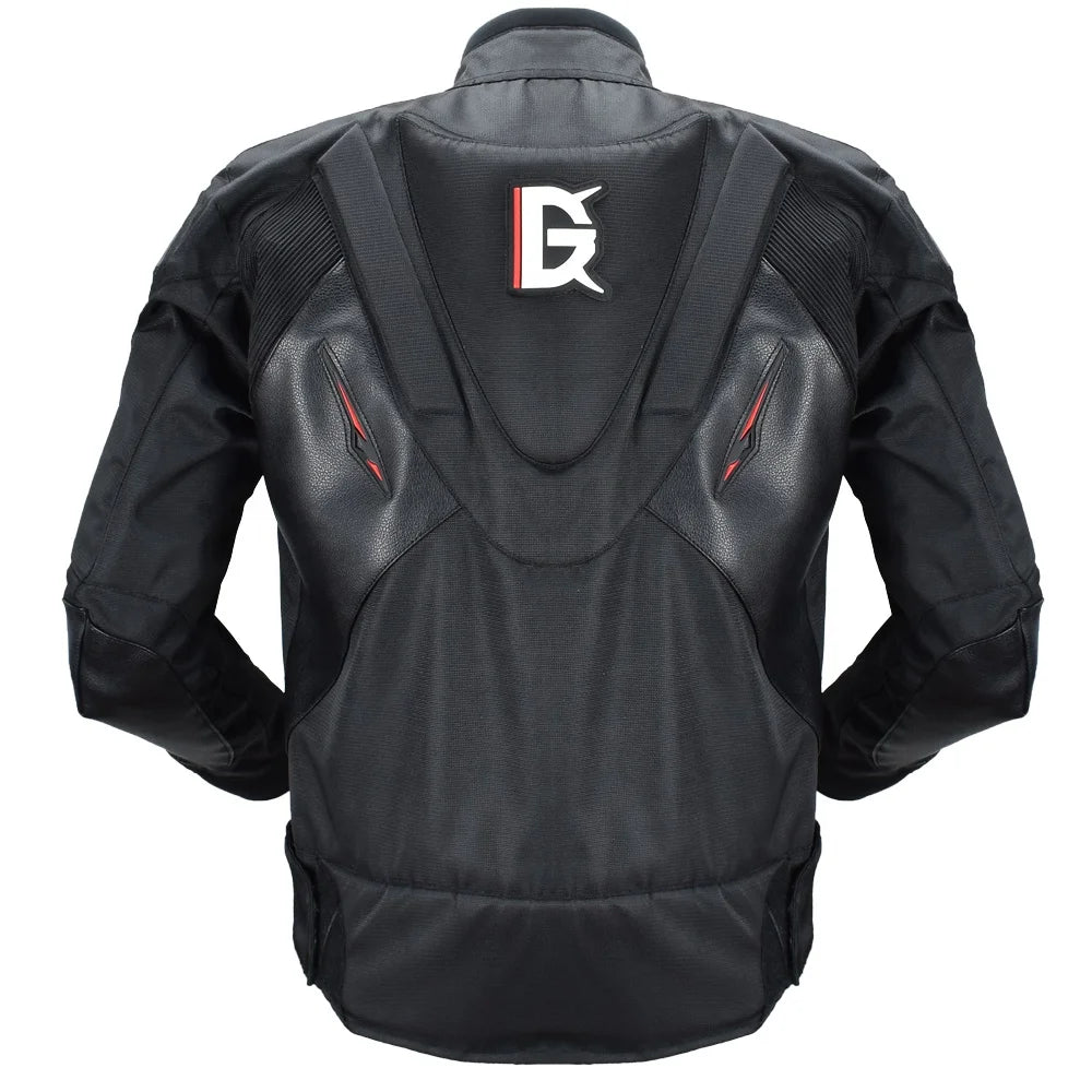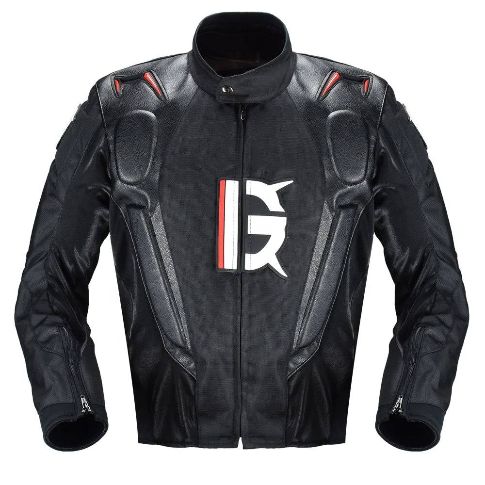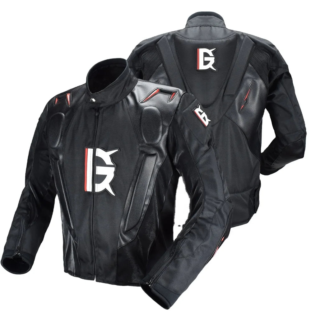 Chaqueta de moto GRY09 unisex, diseñada como prenda de protección integral para uso diario, touring y sport. Confeccionada en cuero y relleno de algodón grueso, es impermeable, corta‑viento, y retardante. El cierre es de cremallera frontal, cuello redondo y corte regular. Apta como chaqueta retro/casual con protección para múltiples tipos de moto.