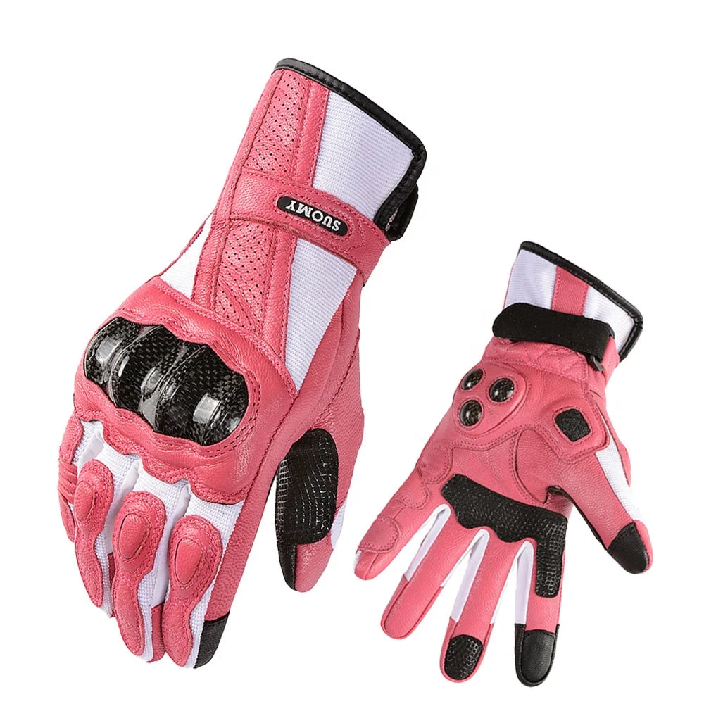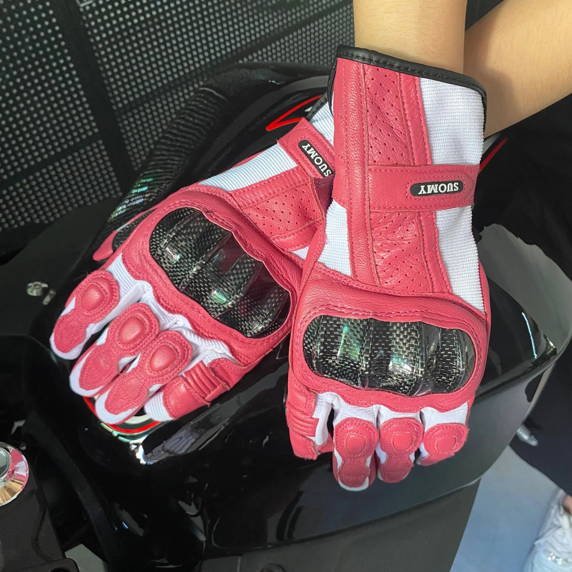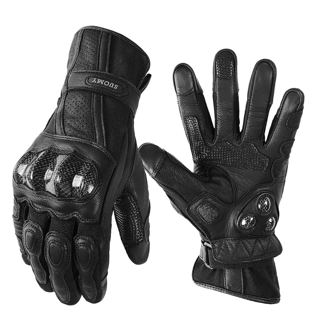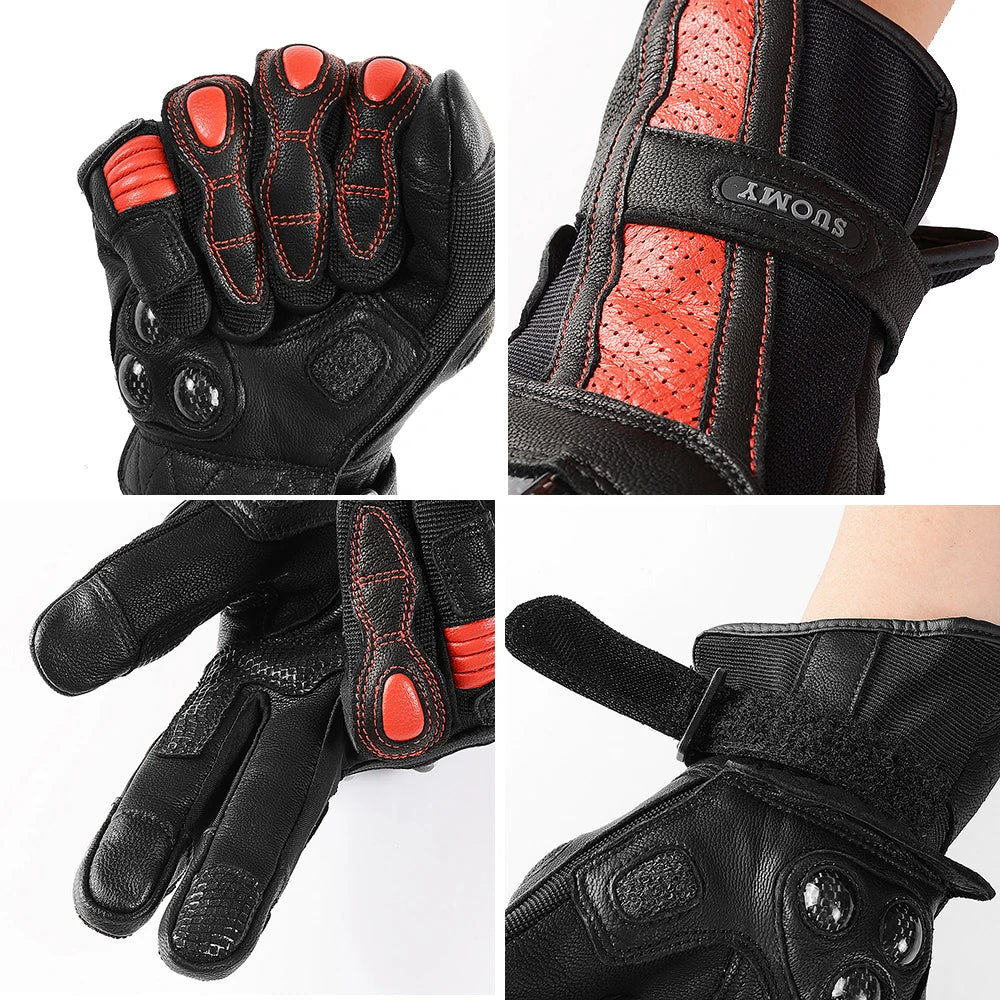 Guantes de caño medio hechos en cuero, polyester, nylon y fibra de carbono. Ofrecen una transpirabilidad óptima y resistencia al agua, además de poder ser usados en pantallas. Son perfectos para una conducción precisa gracias a su sensibilidad.