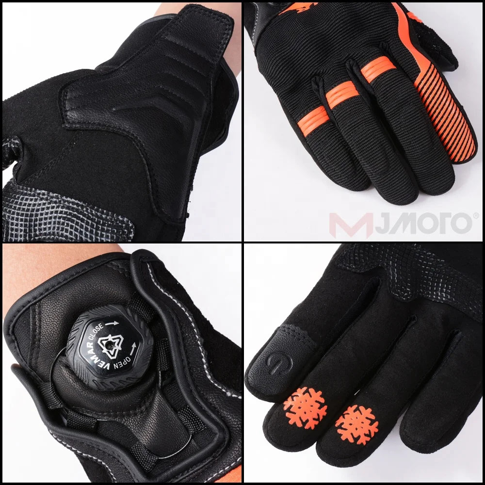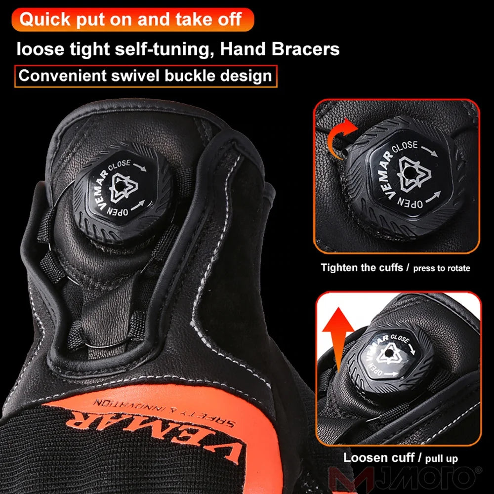 Guantes de moto VE08, unisex y de uso universal para motocross y salidas. Diseñados para protección térmica e impermeabilidad, estos guantes integran materiales como nylon y cuero de alta calidad. Ofrecen resistencia al desgaste, protección UV y agarre antideslizante con recubrimiento de poliuretano. Cuentan con cierre ajustable, función táctil para pantallas y ventilación óptima completo para máximo confort y control durante la conducción.