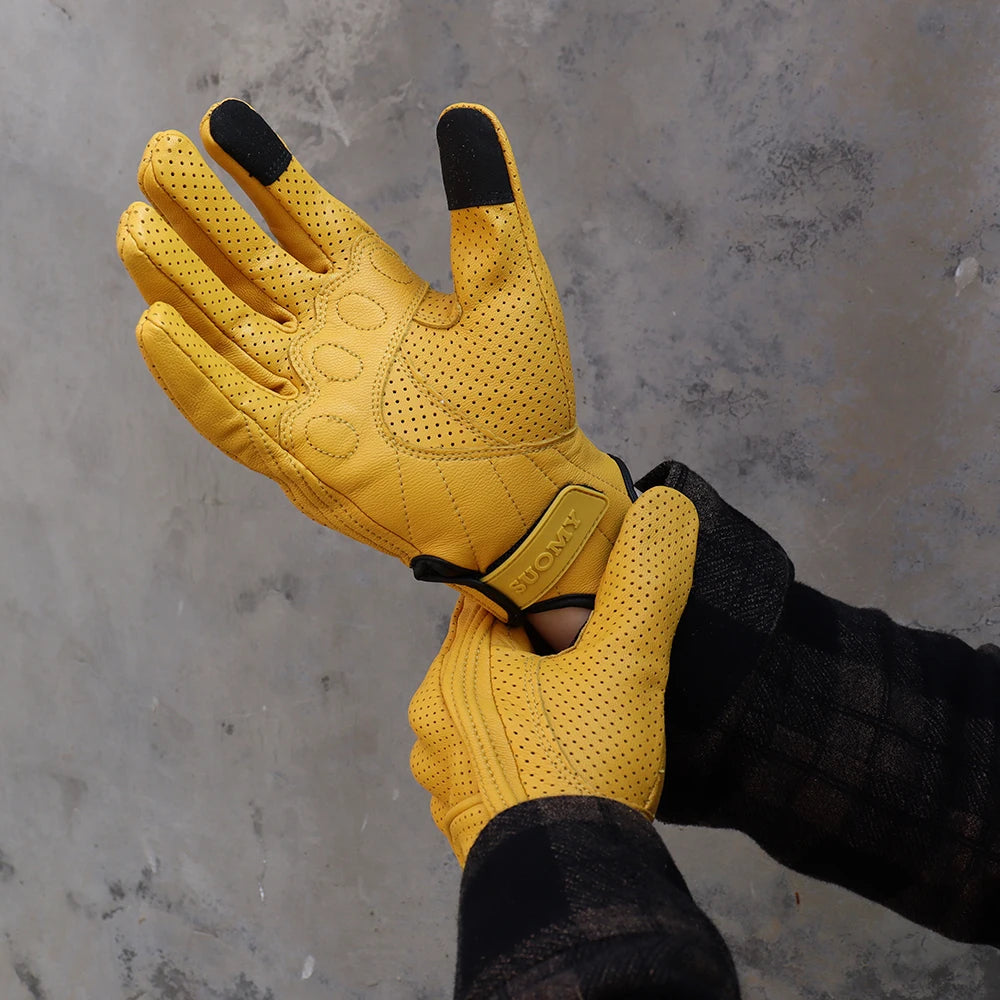Comfortable, safe gloves designed in vibrant colors like yellow and pink. They come in two versions: micro-perforated for breathability or solid. Touchscreen compatible and ideal for urban and interurban use. Made of leather and polyester, you'll notice the comfort the moment you put them on.