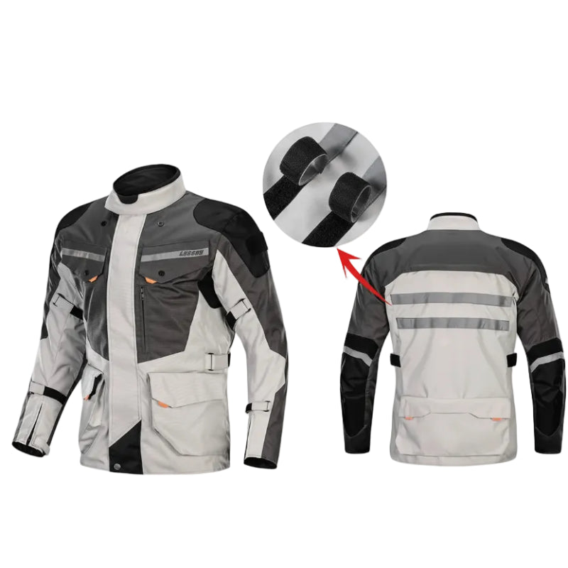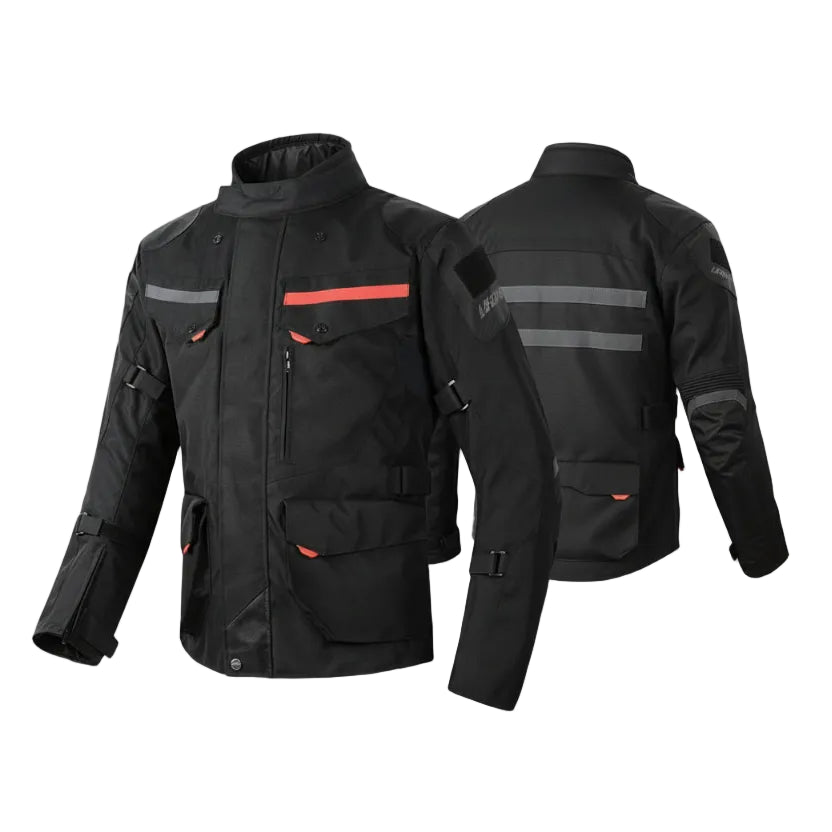 Face any season with the LY903 motorcycle jacket, designed for those seeking protection and versatility in one piece. Its Cordura-type fabric with a waterproof and windproof membrane protects against rain and cold, while the removable thermal liner allows you to adapt it from winter to summer. Unisex and with a sporty touring cut, it's ideal for everyday use, long rides, and recreational outings.