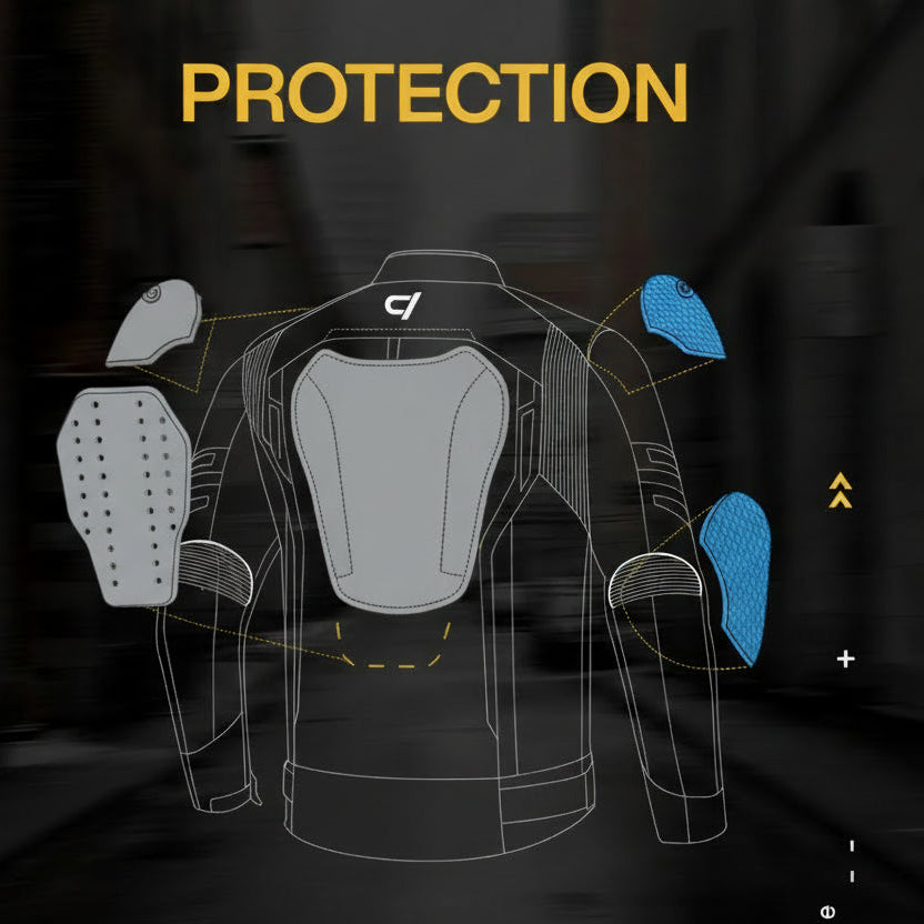 The DNK0012 men's touring jacket is designed for year-round riding and is CE certified. Its 100% nylon fabric combines lightness, durability, and excellent wind and rain protection with quick-drying properties and high breathability. It comes with a protective pack and reflective elements to ensure you're visible when needed. You won't want to ride without it.