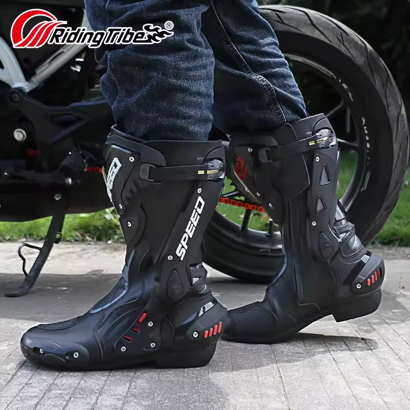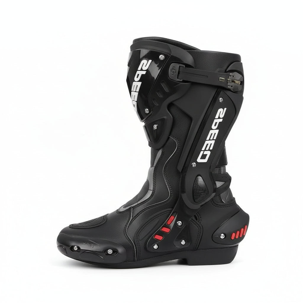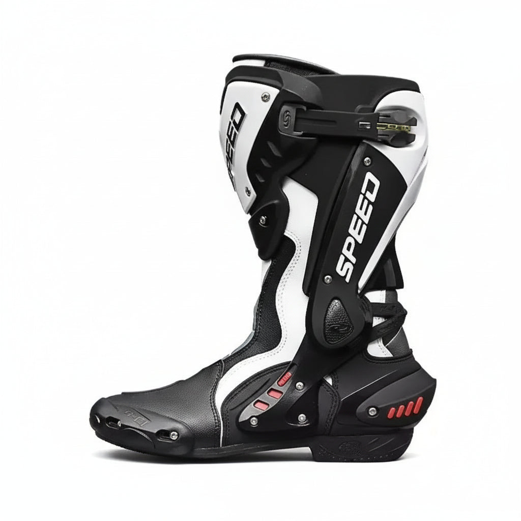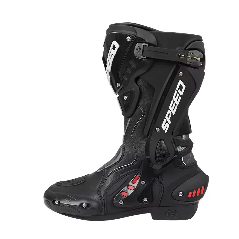 Join the legends with the B1008 boots. Designed for optimal performance year-round, these knee-high boots ensure maximum safety on every journey. The combination of leather, microfiber, and high-resistance PU, along with the mesh lining, offers durability and breathability. Their rubber outsole provides exceptional grip. Choose your style with options in Black, Red or White.