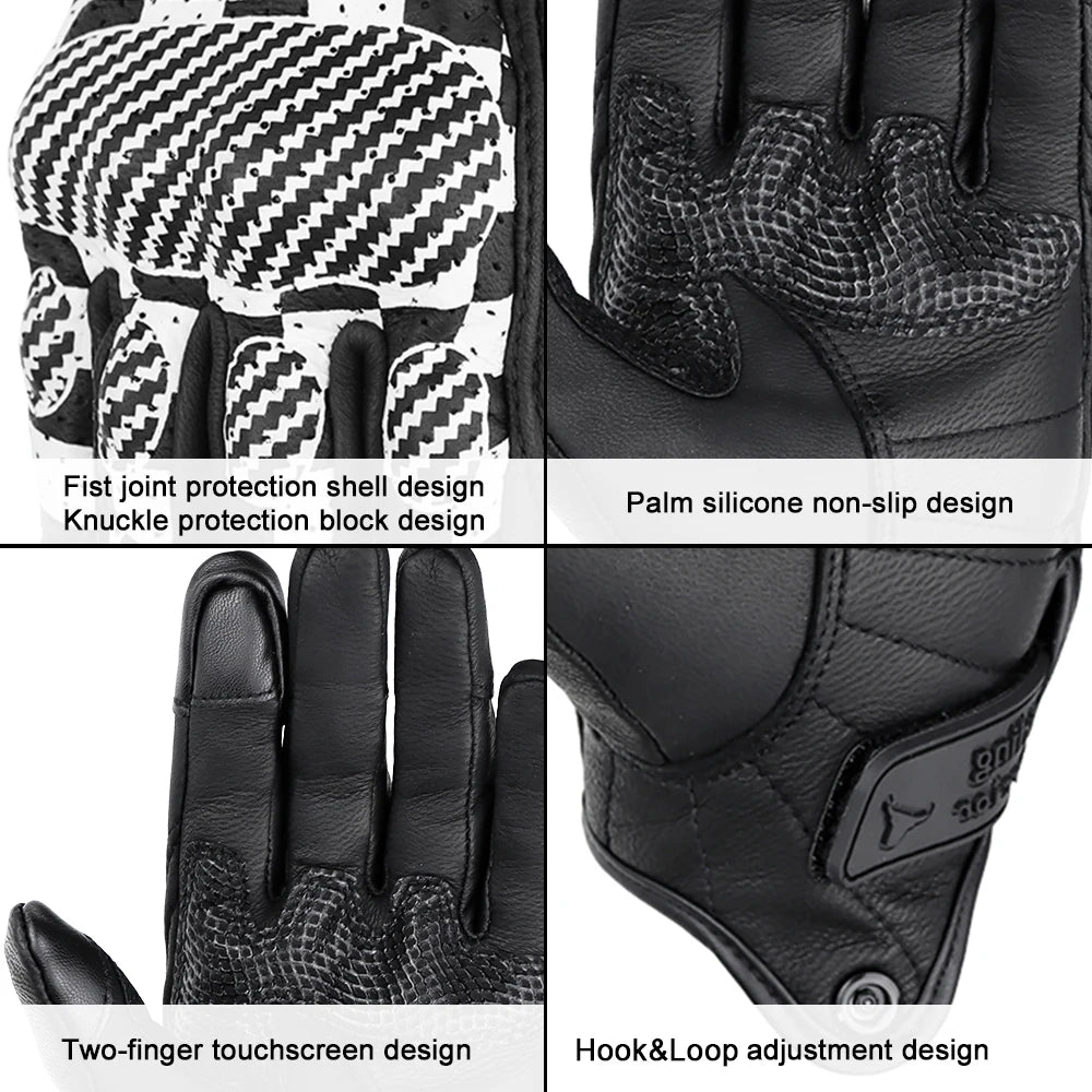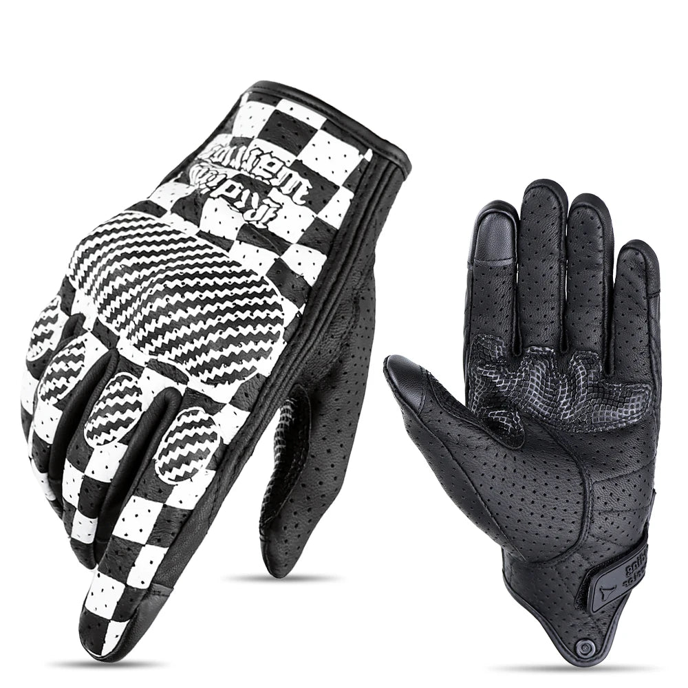 AFG-12 gloves crafted from leather offer exceptional comfort and sensitivity. These short-cuff gloves feature adjustable wrists, a non-slip grip, and touchscreen compatibility. Ideal for both road and urban riding.